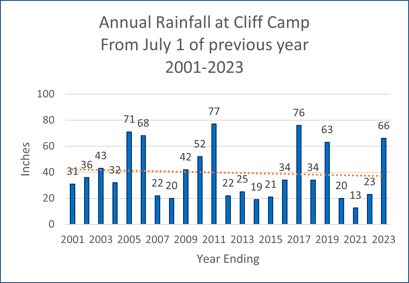 (Snow depth, Water Content, & Air Temp; 10300ft 15miles ENE of Cliff Camp)